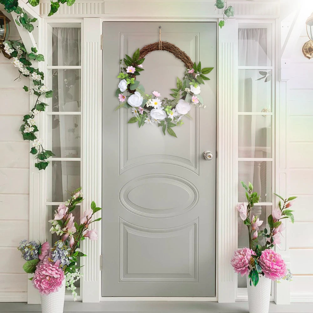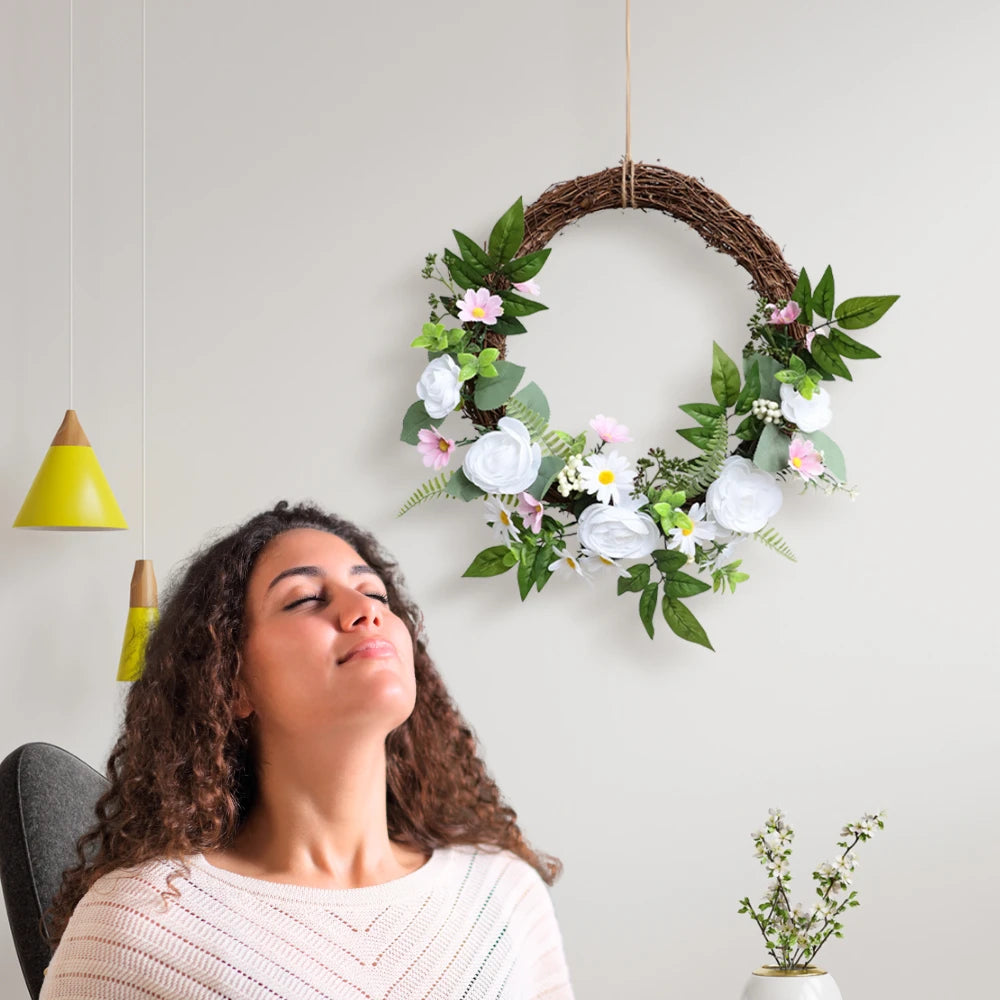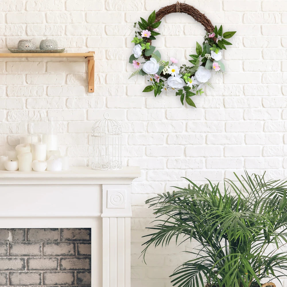 This artificial rose wreath is evergreen all year round and requires no maintenance - no watering, fertilizing or pruning. It is made of high-quality PEC material, which looks realistic, durable, and not easy to fade. It is suitable for any space and can easily create a natural look.