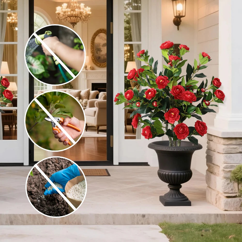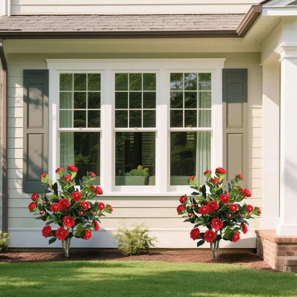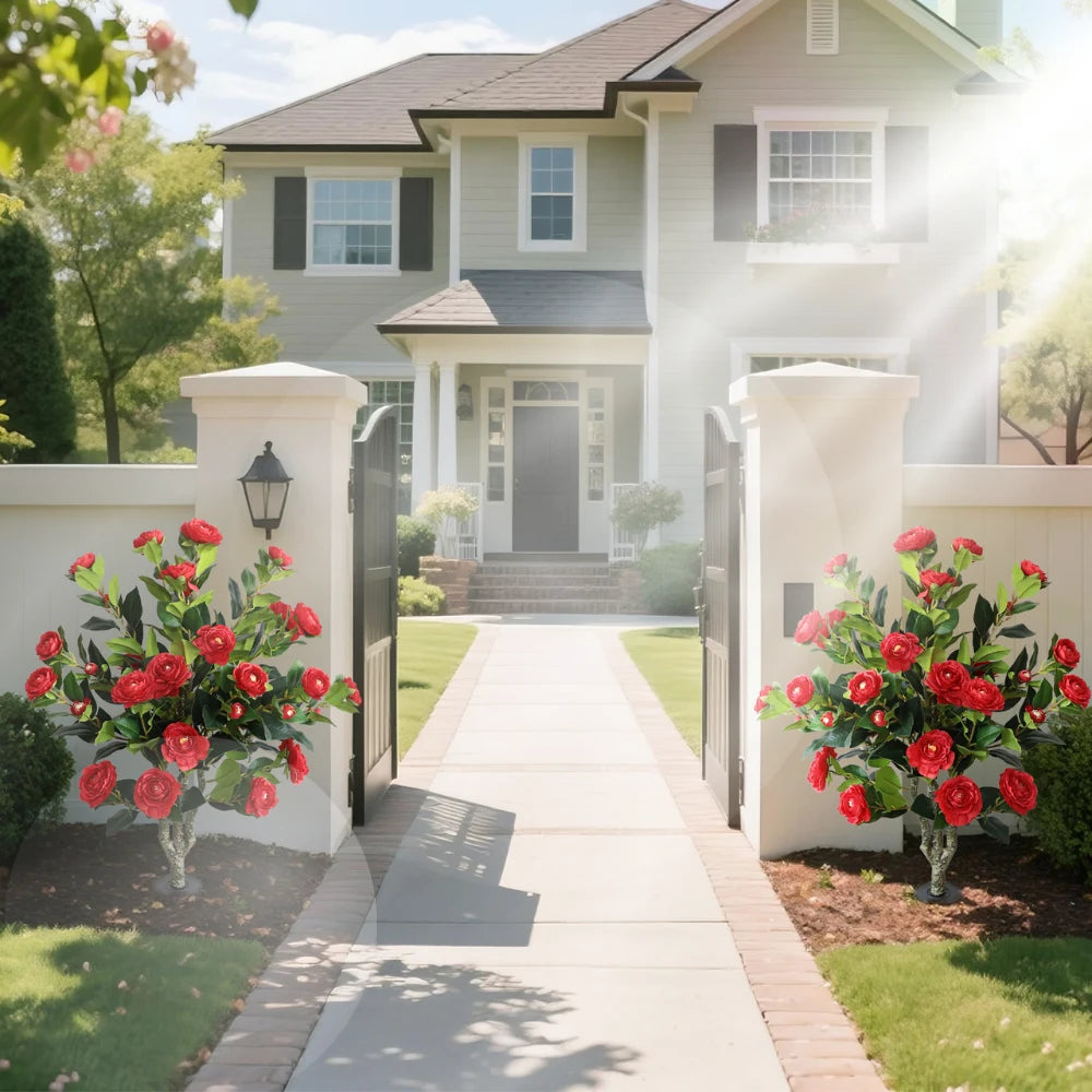 2 Pieces 37in(3.1ft) Artificial Flower Red Camellia Spike Tree