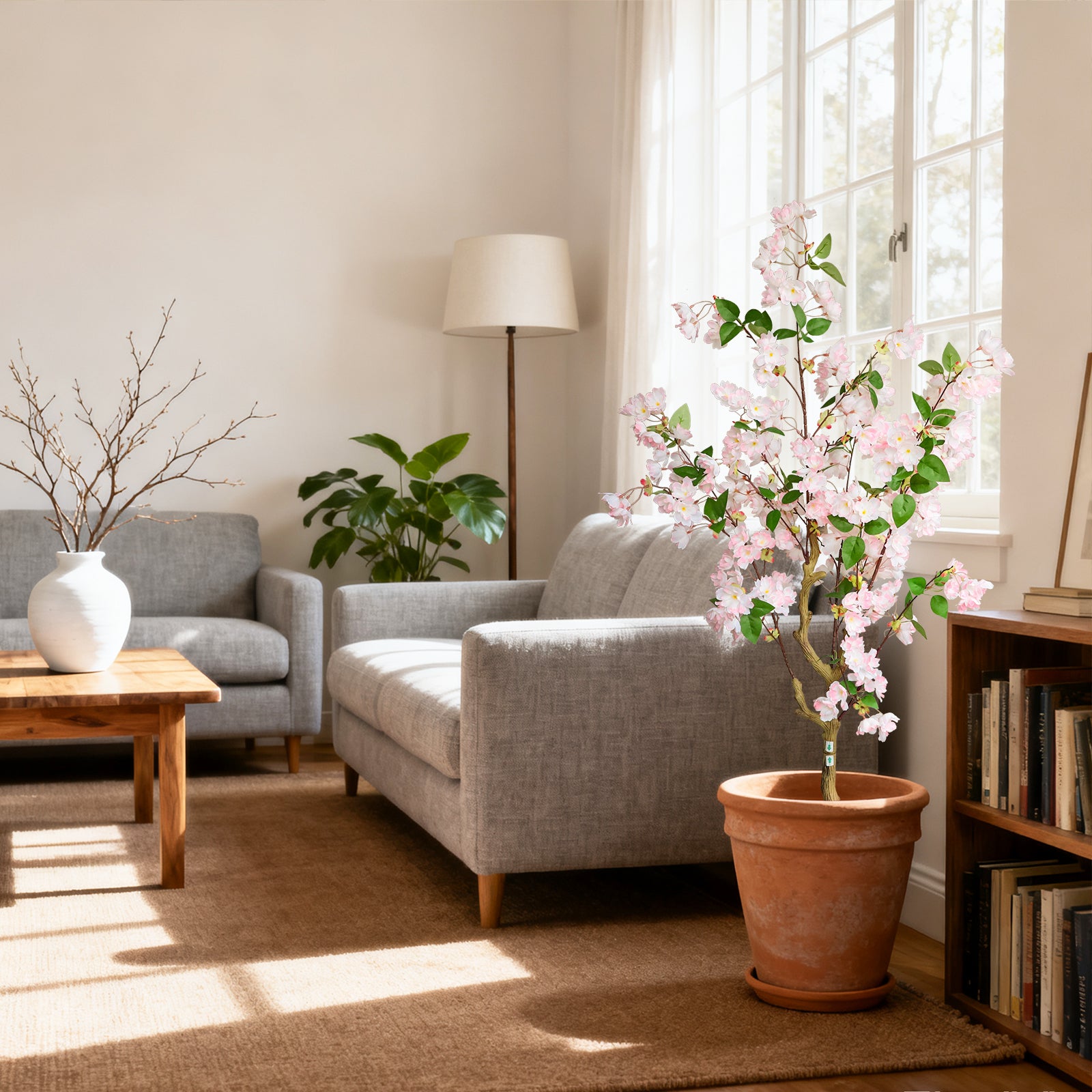 Inspired by Japan's iconic cherry blossom season, the Artificial Pink Cherry Blossom Tree offers UV-resistant, maintenance-free petals with no odor. Its graceful design captures the essence of spring, making it perfect for brightening living rooms, wedding venues, or outdoor patios. Create a romantic, tranquil atmosphere effortlessly throughout the year.