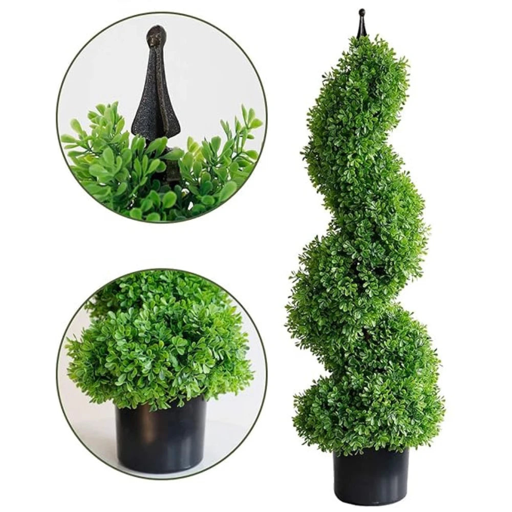 2 Pieces 43in(3.6ft) Artificial Boxwood Spiral Topiary Tree