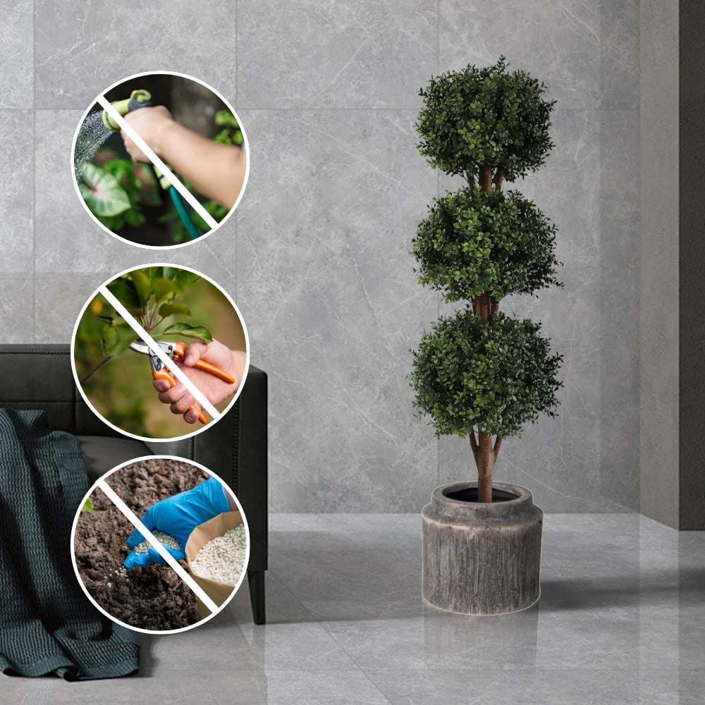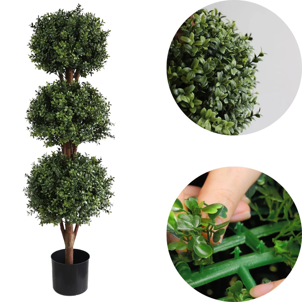 - 3.87ft/46.5in artificial three-ball boxwood tree, pot height 5.7in, width 6.4in