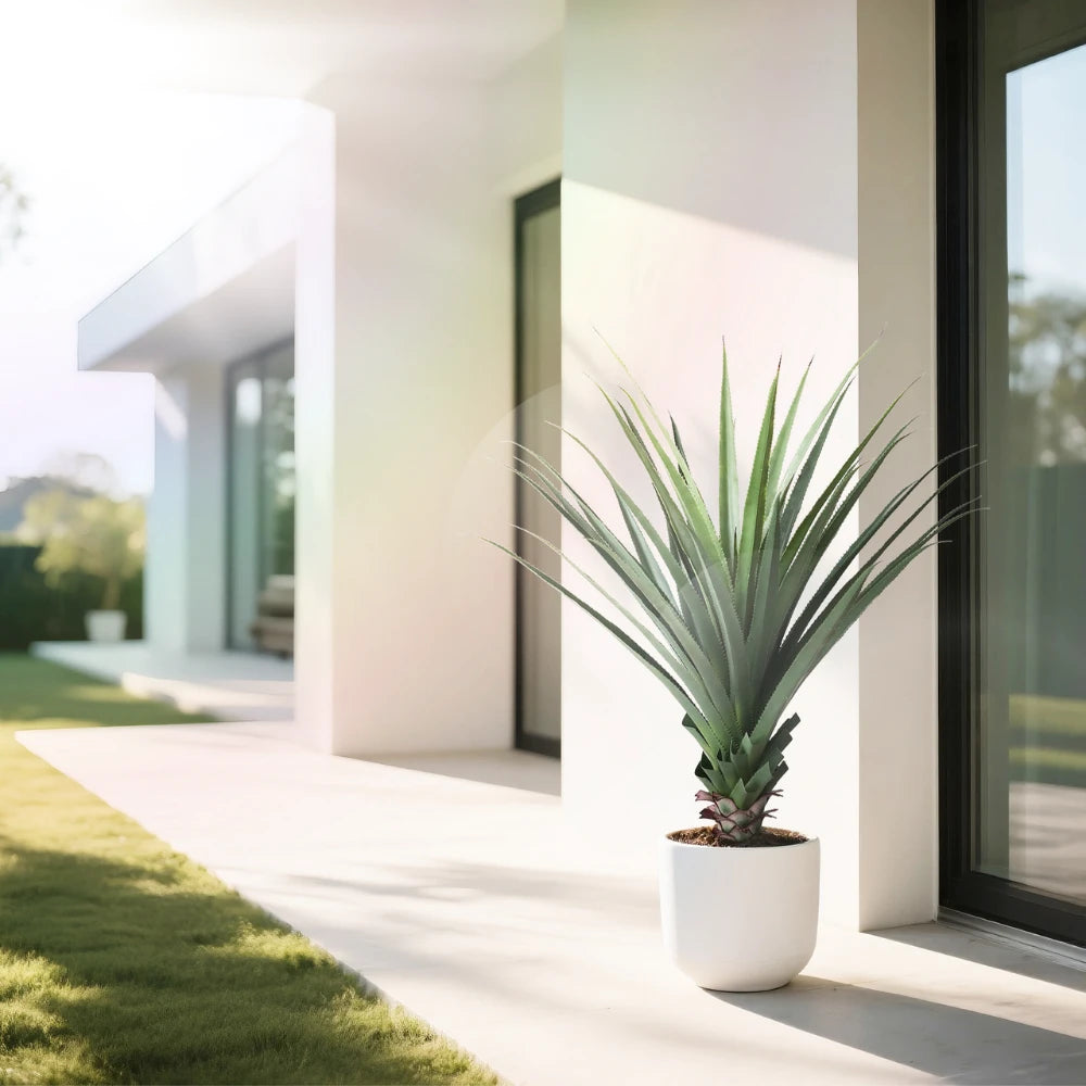 Our Artificial Agave Tigris combines avant-garde botanical design with deep cultural symbolism. Known as the “mother-in-law's tongue,” this eye-catching succulent represents purification, fortitude and good luck in feng shui traditions. Whether it's in a modern indoor or rugged outdoor setting, this simulated tequila will stay alive year-round without water or sunlight.